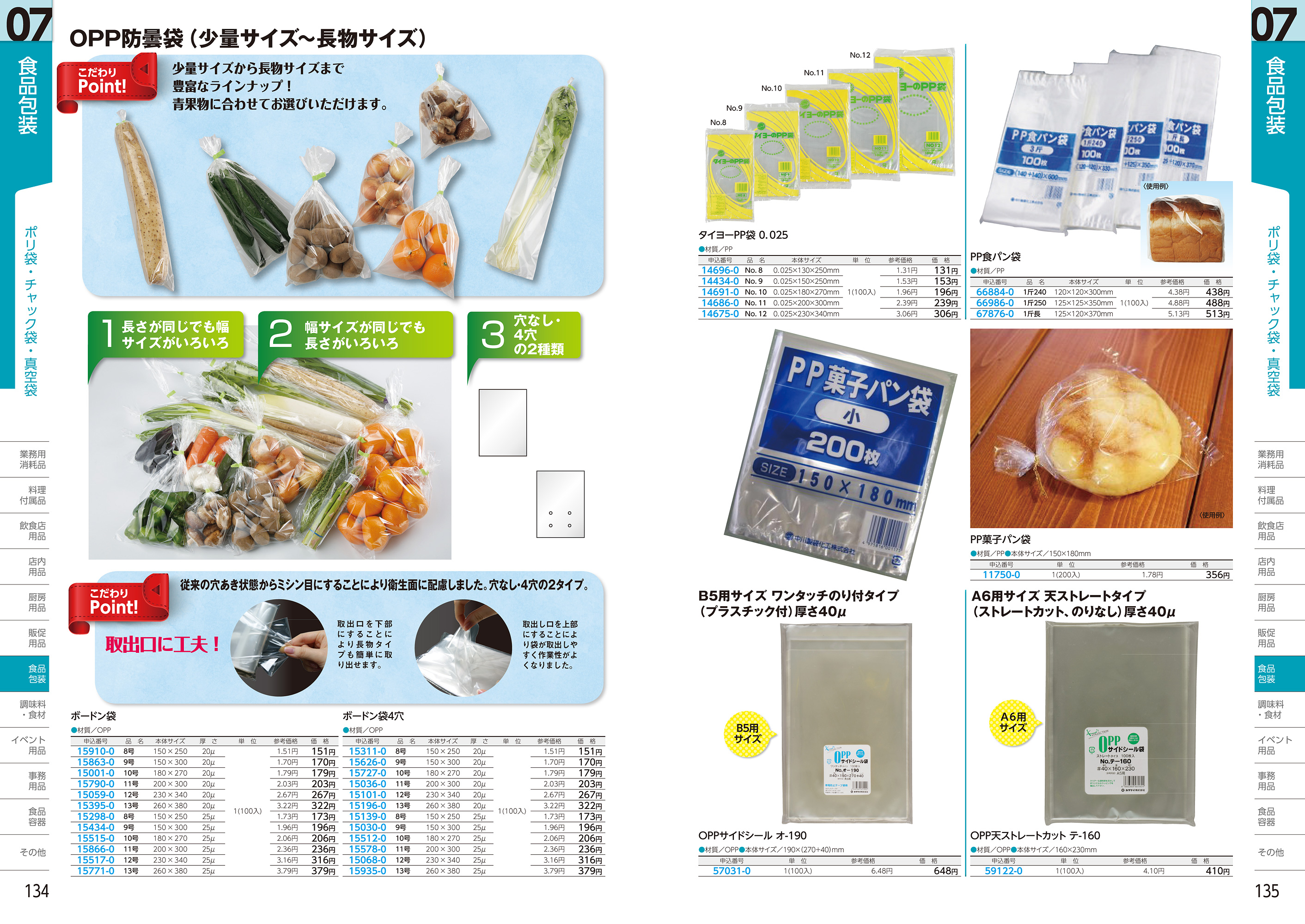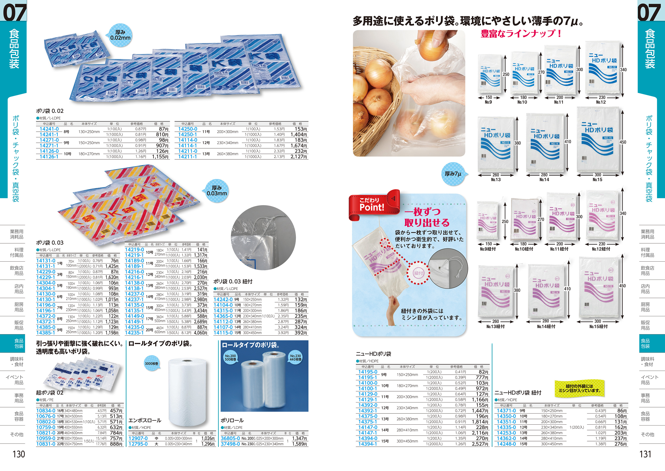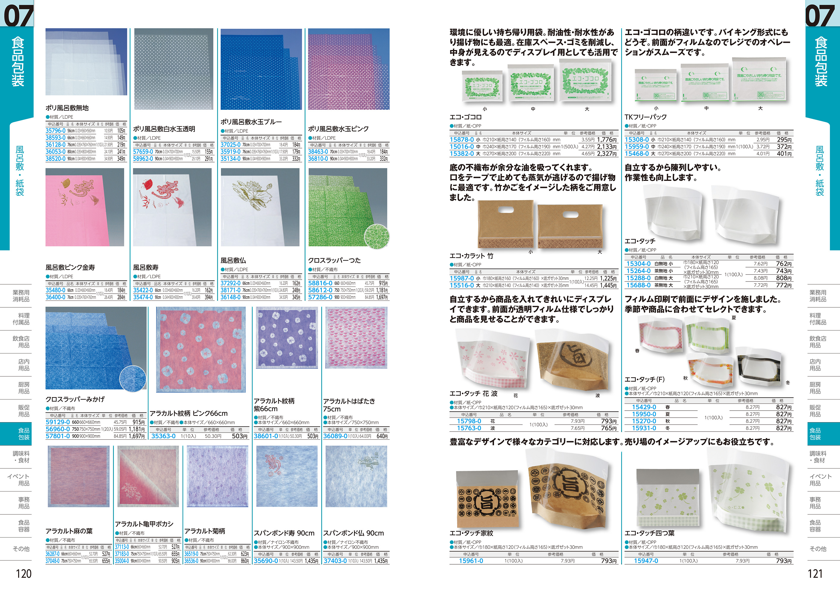 食品包装資材を中心に、包装機械での効率化や、売り場を彩る店舗備品、食の安全を守る衛生資材など、多岐に渡るアイテムの中で最適な商品づくりをお手伝いいたします。