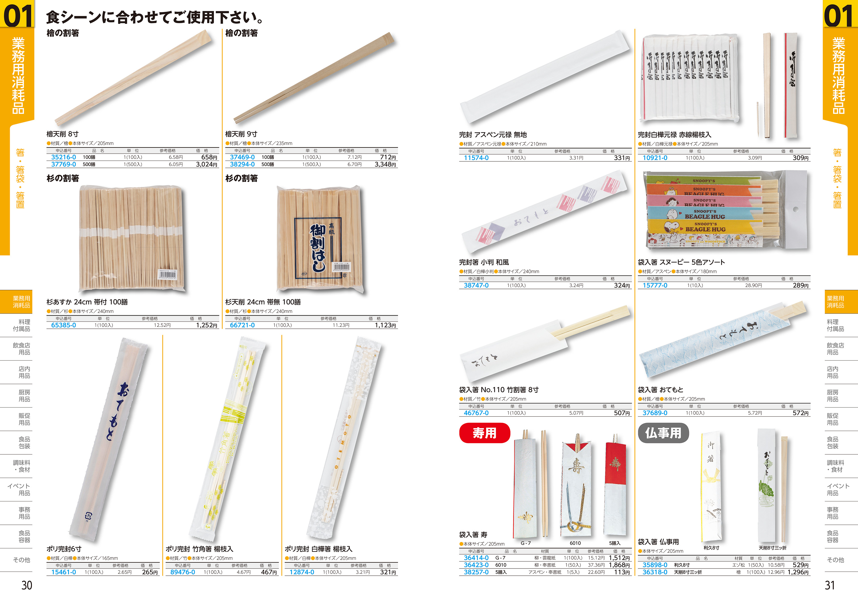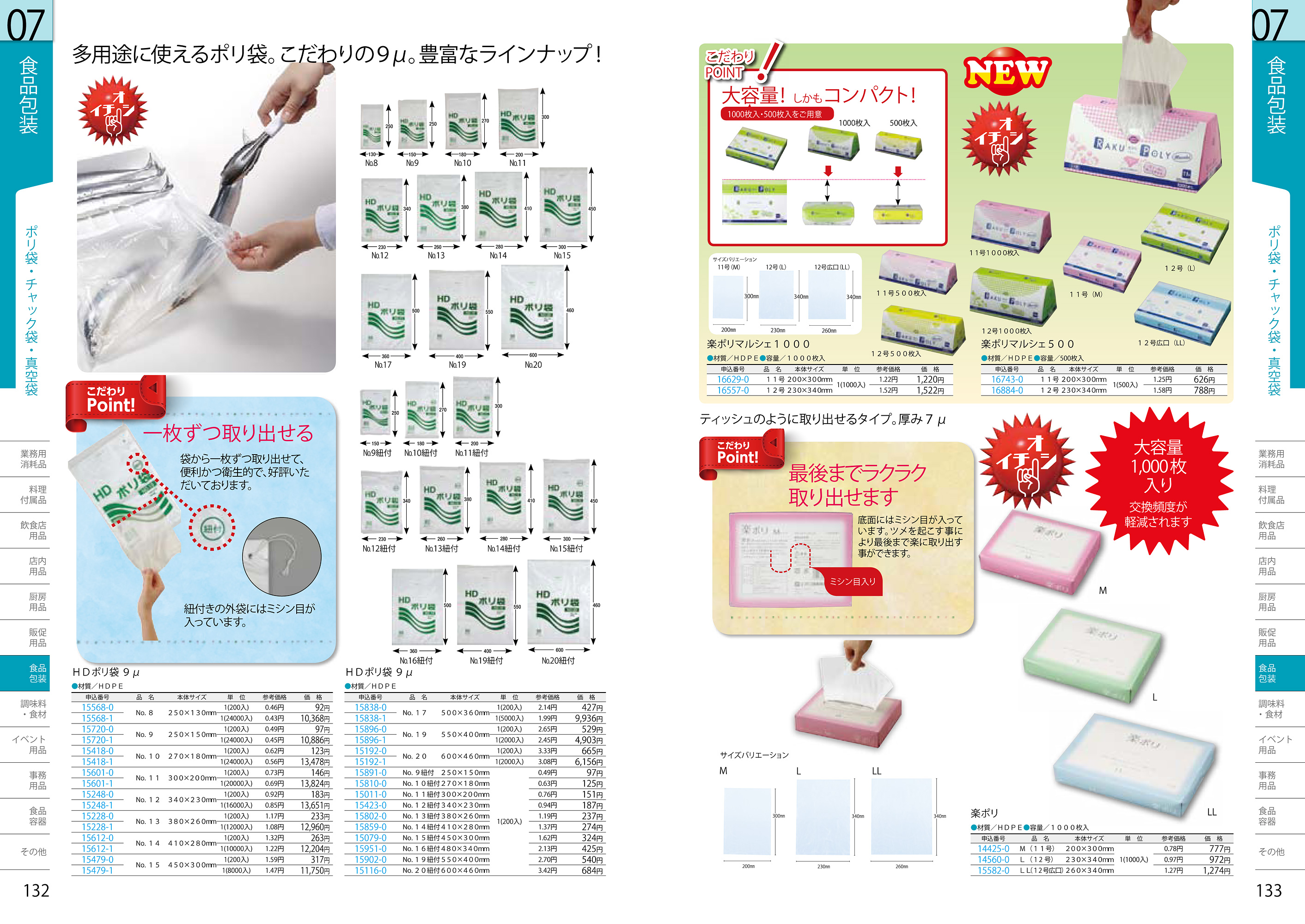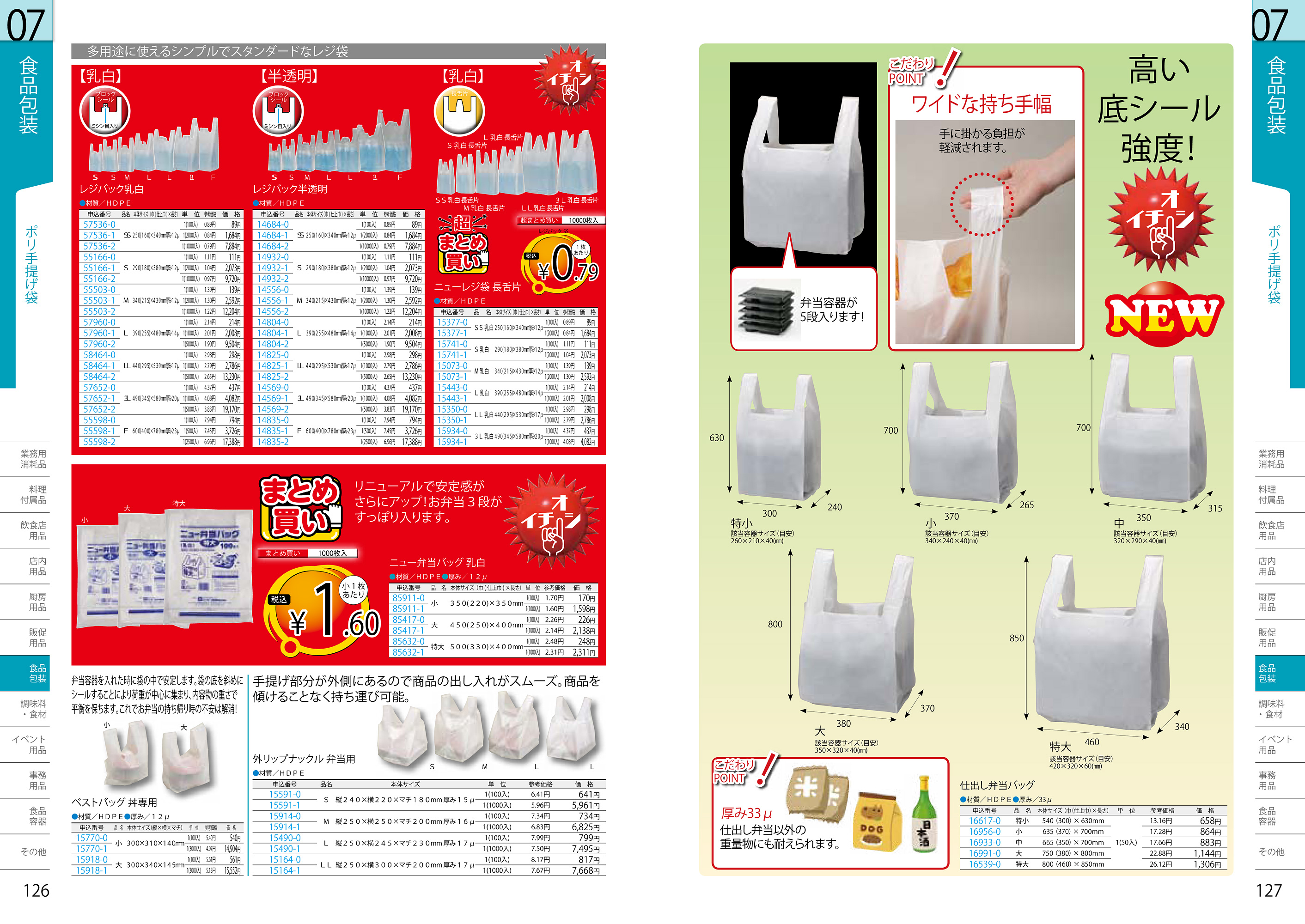 食品包装資材を中心に、包装機械での効率化や、売り場を彩る店舗備品、食の安全を守る衛生資材など、多岐に渡るアイテムの中で最適な商品づくりをお手伝いいたします。